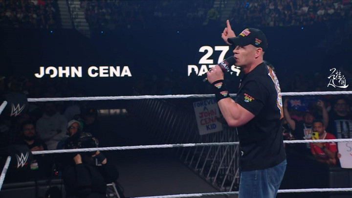 摔角狂热大赛结束后的第一期Raw,向来是WWE各种搞事情的好时机,剧情组在一开场就放了个大招。新任WWE冠军约翰塞纳,毫不掩饰地公开了他退役前剩下的所有行程数——27次亮相,不是27场比赛哦,是包括比赛在内所有需要他露面的活动,27次