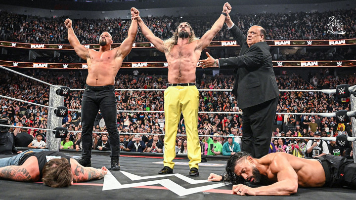 再譬如,“肌肉小爹”布朗·布雷克,同赛斯·罗林斯合兵一处,成为“Paul Heyman Guy”暴打罗曼以及CM朋克